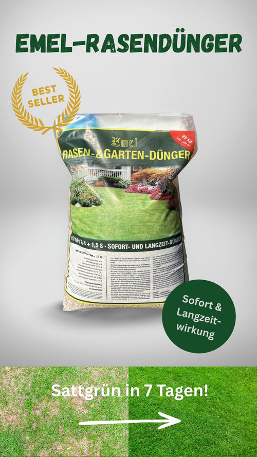 EMEL Rasendünger 25kg - 15+10+17+4 NPK Dünger Sofort & Langzeitwirkung
